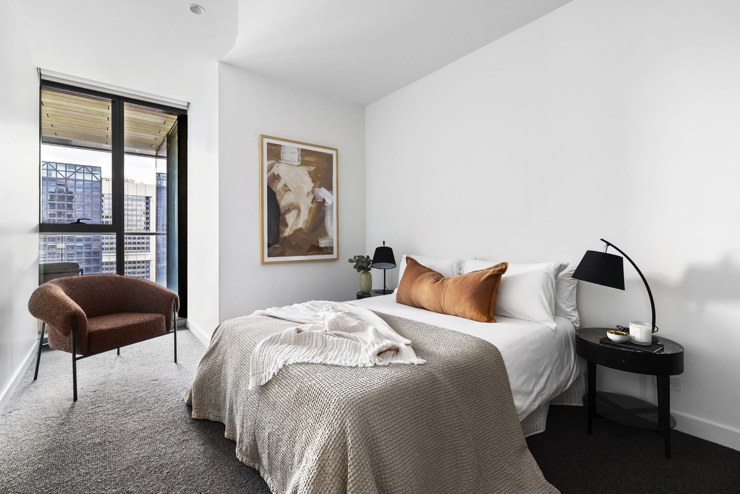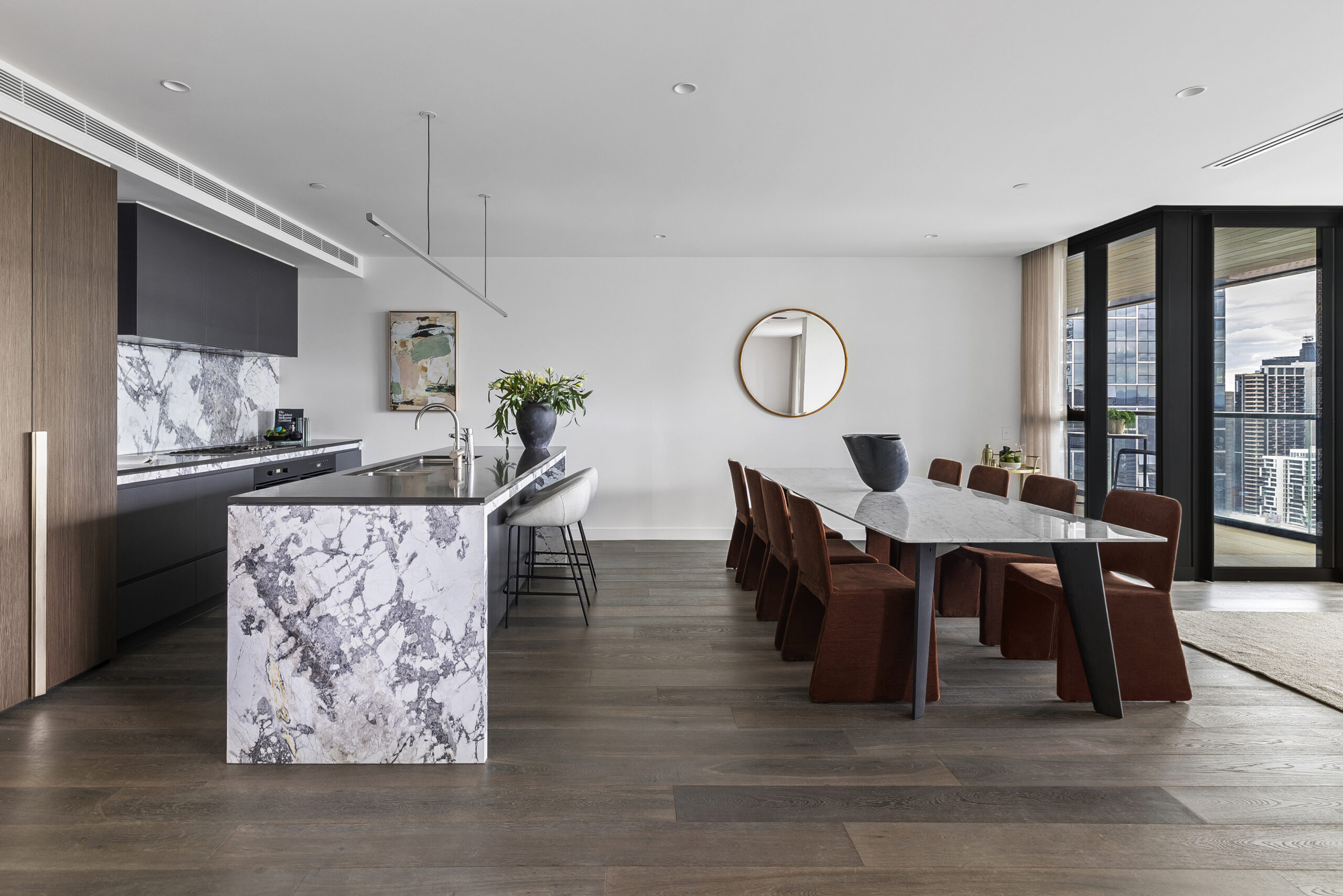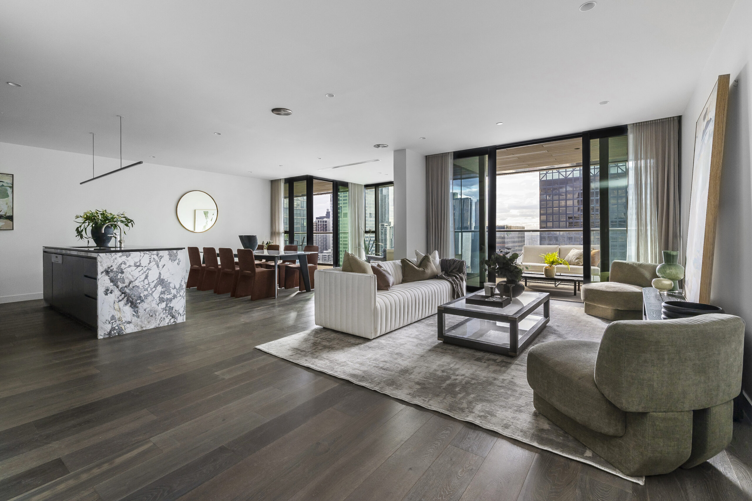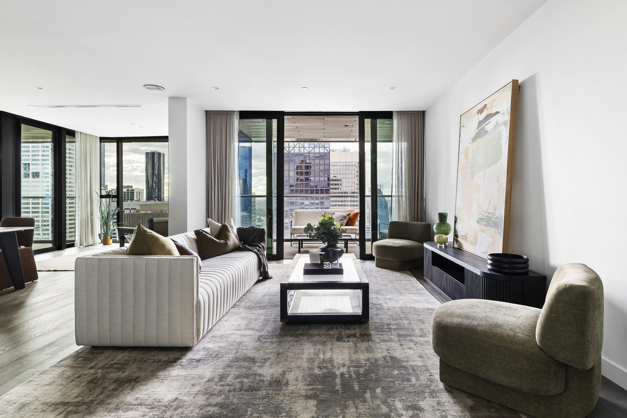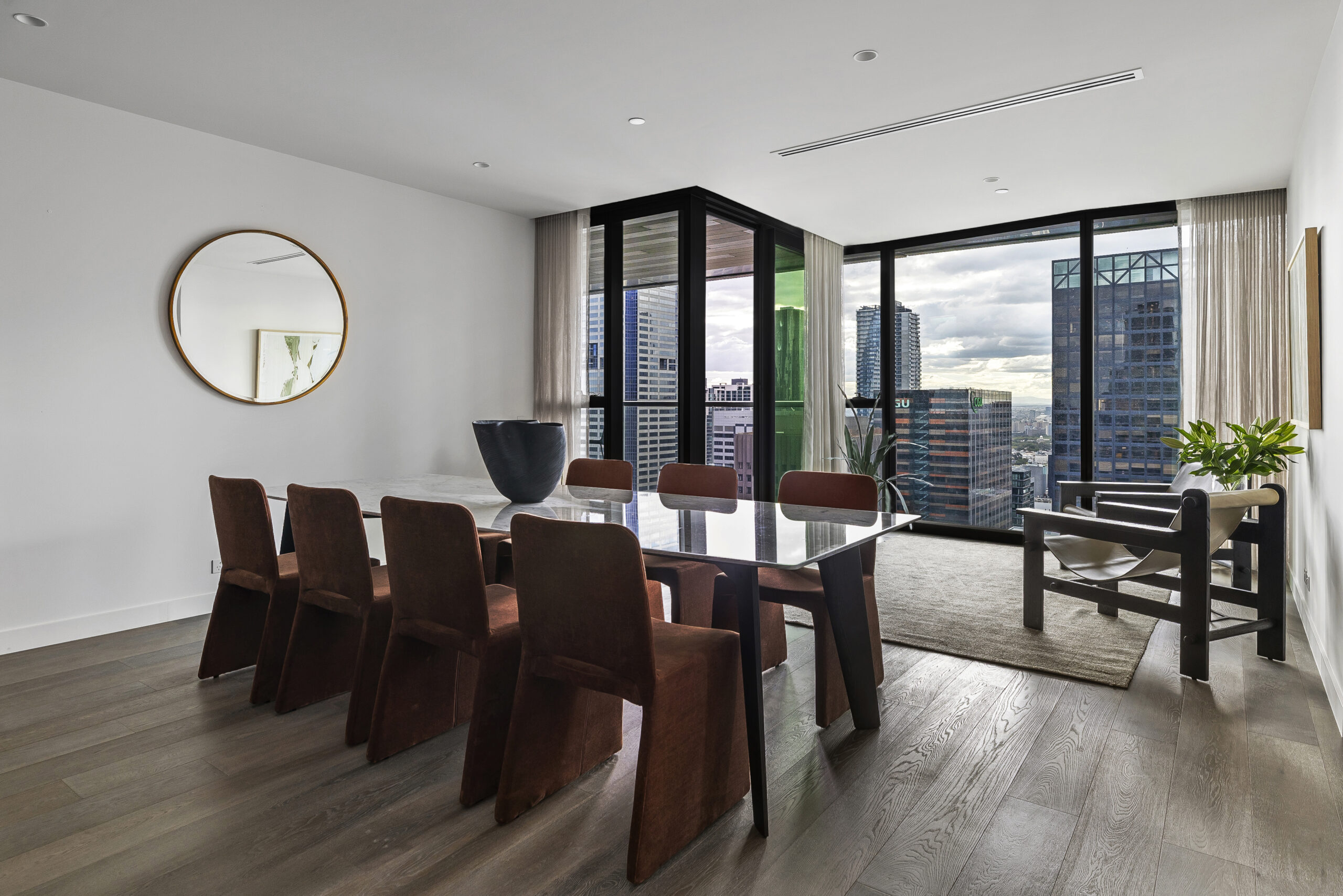 Positioned at the heart of Melbourne’s CBD, this single-level sub-penthouse is as convenient as it is impressive. Soaring full-height windows frame sweeping city skyline views, while generous proportions and two north-facing all-weather alfresco terraces bring a sense of space and outdoor connection rarely found at this altitude. Refined interiors are flooded with natural light throughout.