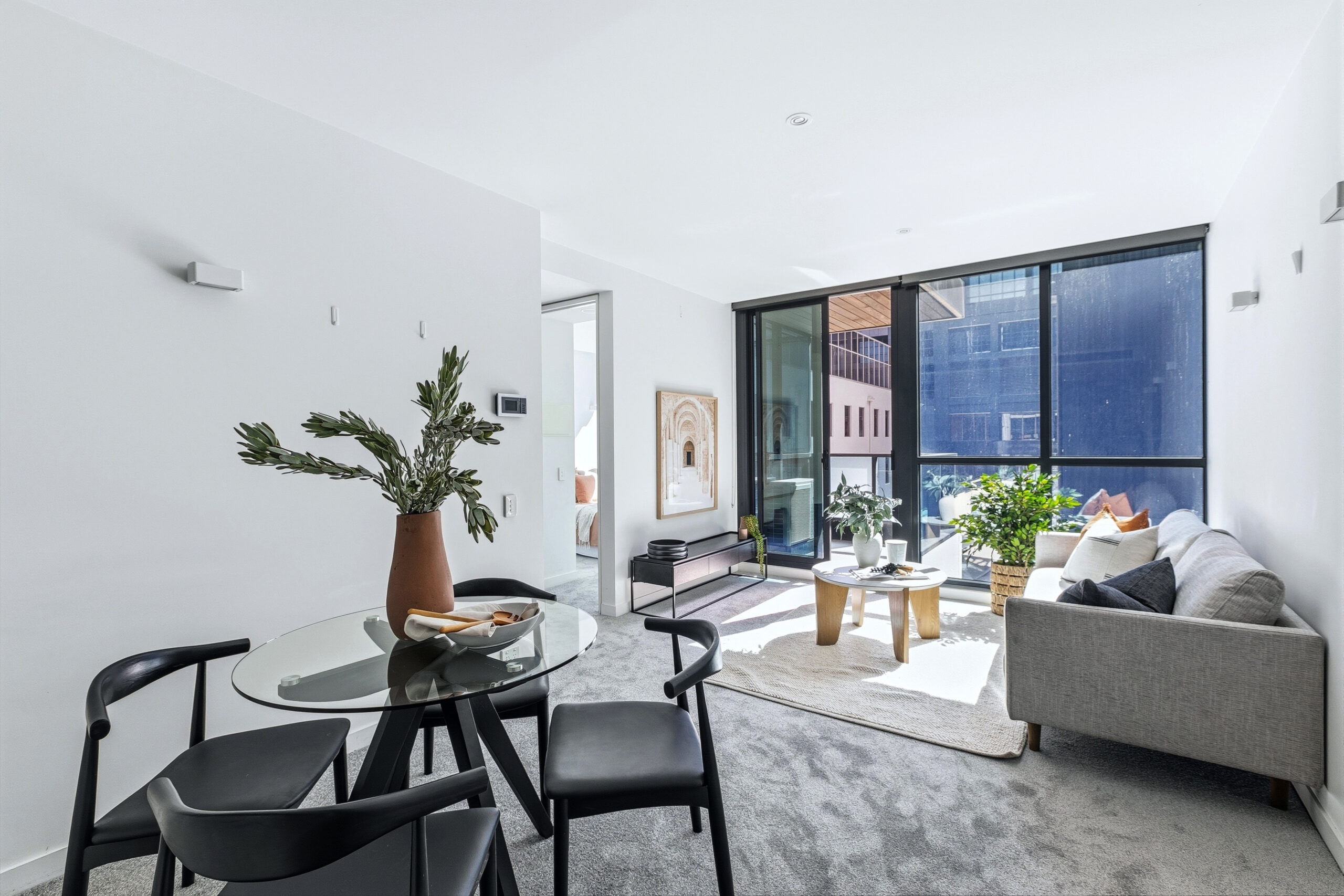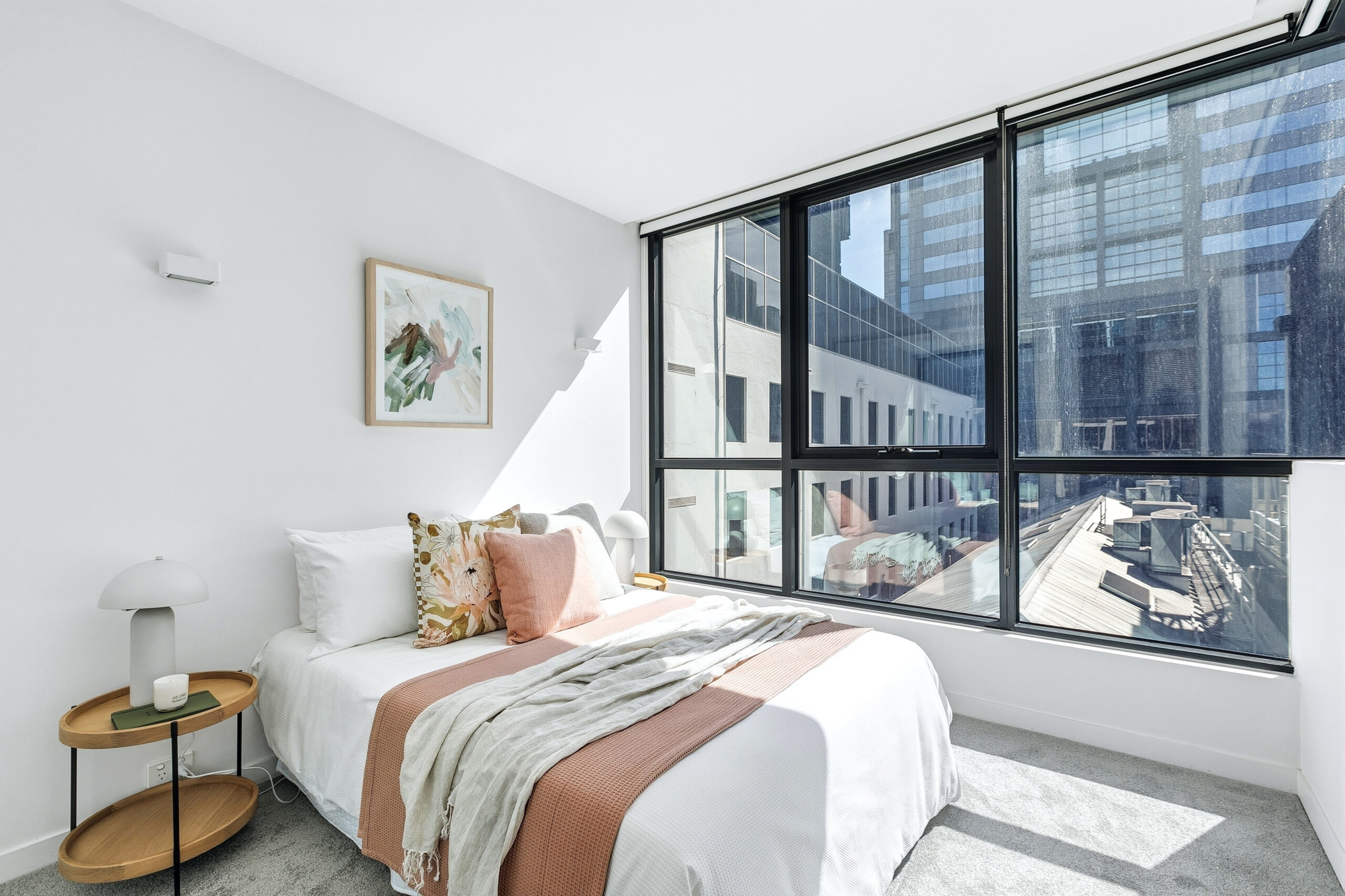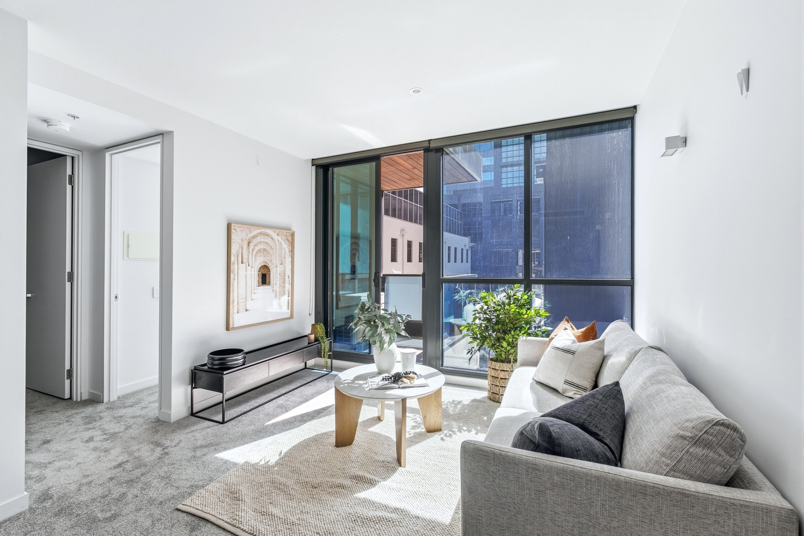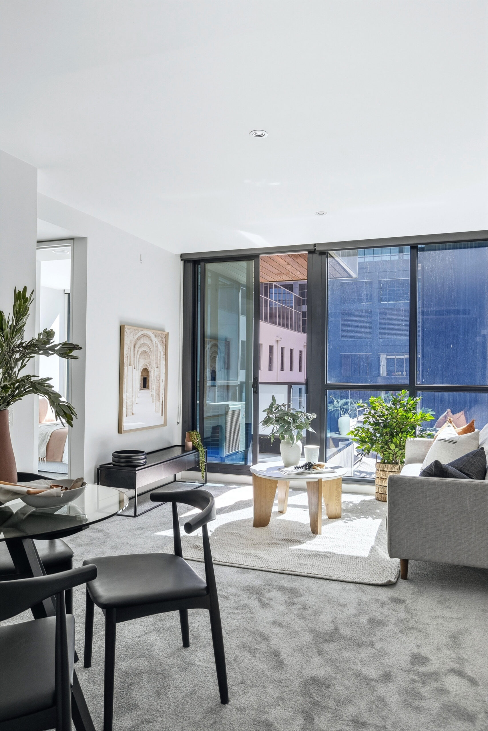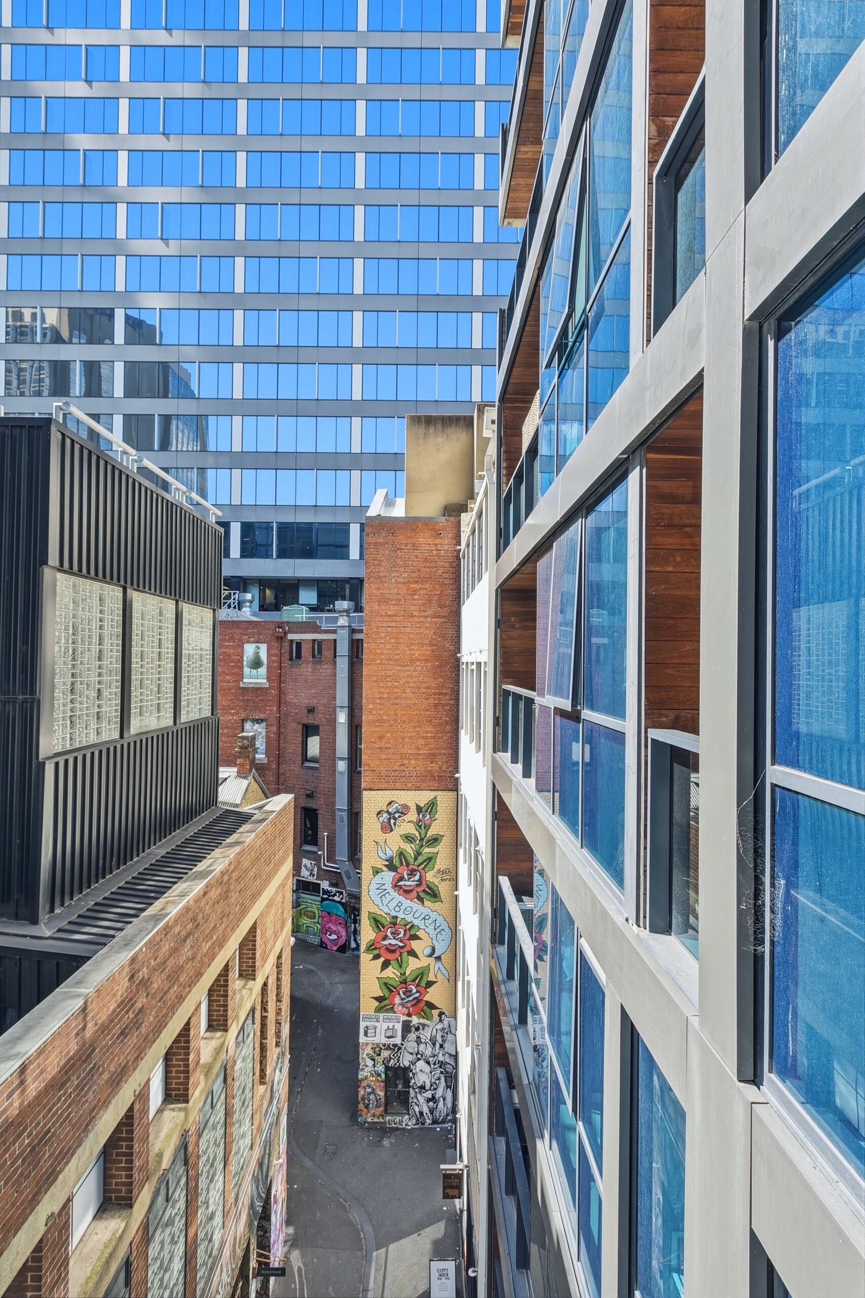 A study nook and private balcony in the main bedroom are both pleasing inclusions. The home also boasts heating/cooling, a European-style laundry, full pantry, secure entry, basement parking, whilst on-site amenities include a gym, rooftop terrace with barbecues and residents’ lounge. A secondary entrance/exit leads directly to Flinders Lane — and from there, the legendary AC/DC Lane is right at your fingertips, where Melbourne’s famous laneway street art culture comes alive.